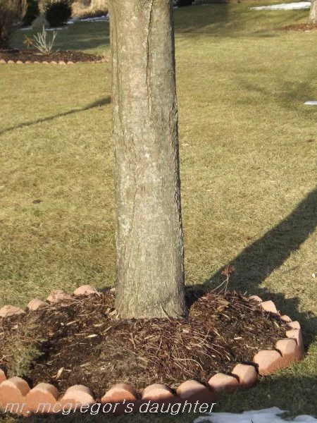 landscape fabric and rocks. This poor tree is drowning and suffocating (and probably strangling as well).
